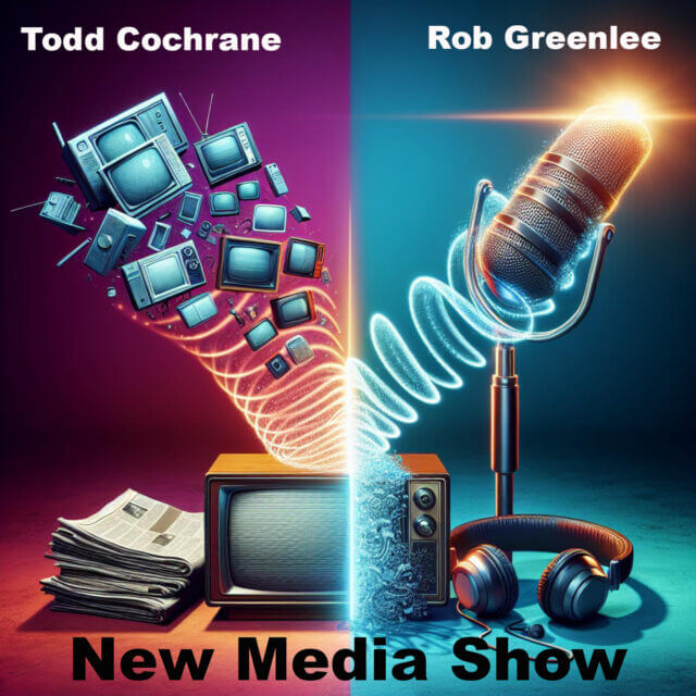 This episode of “The New Media Show,” hosted by Todd Cochrane and Rob Greenlee, delves into the shifting media consumption landscape from mainstream sources to podcasting. The conversation begins with the hosts discussing the technical aspects of live-streaming platforms and the intricacies of timing content delivery across various platforms.